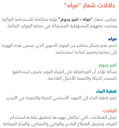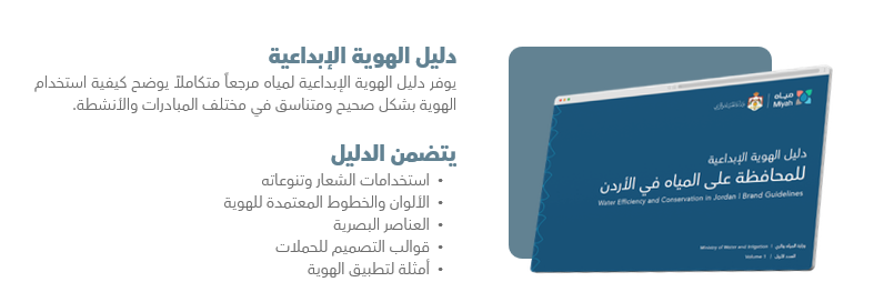 ومن هذا المنطلق أطلقت وزارة المياه والري الهوية الوطنية “مياه – لخير يدوم” لتكون إطاراً جامعاً يوحّد الرسائل والجهود الوطنية الرامية إلى تعزيز ثقافة المحافظة على المياه ورفع كفاءة استخدامها في مختلف القطاعات.